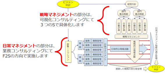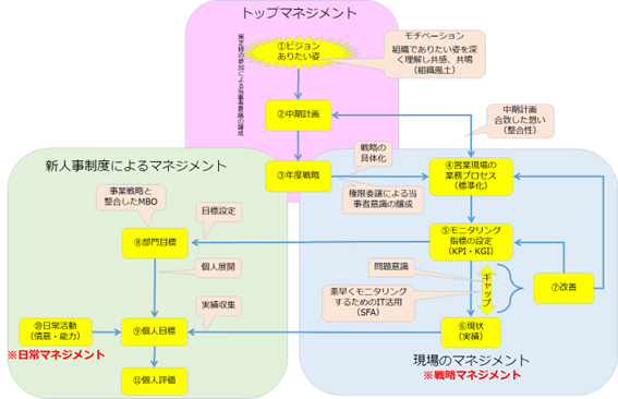 一方で、ビジョンや計画に基づいた「戦略的な現場活動」は、「戦略マネジメント」として管理しなければなりません。