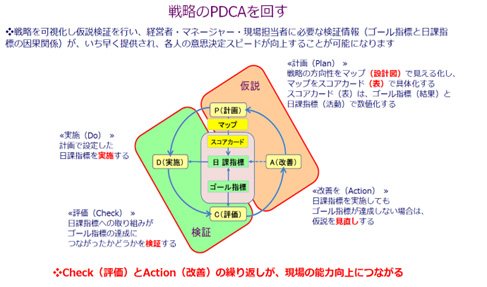 DX(可視化経営システム)は、日常業務の効率化(デジタル日記帳)のためだけに使うのではなく、むしろ戦略的な取り組みを可視化し、その実施・検証を効率よく行うためにこそ活用すべきです。