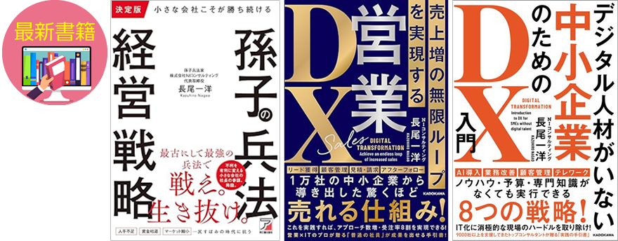 ここでは、「見える化」「DX・デジタル活用経営」「営業力強化」「孫子兵法」「人材育成」「アウトソーシング」の5つのカテゴリーに整理してご紹介いたします。発行年は古くなってしまったものもありますが、その中に書かれた考え方や基本コンセプトは今も尚充分に通用するものになっていると自負しております。カテゴリーの重複もございますが、新しいものから並べておりますので、ご興味をお持ちいただければ、お近くの書店ならびにAmazonにてお買い求め下さい。